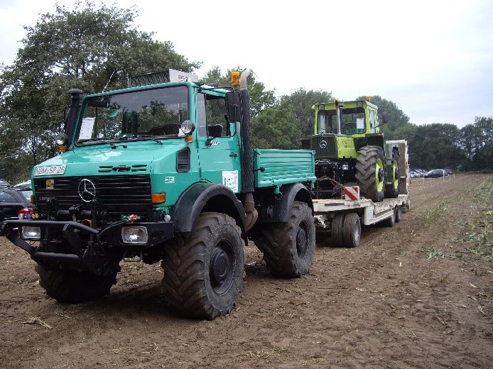 ich nehme mit Fahrzeugen teil. Werde mit Unimog und MB trac auf dem Tieflader anreisen.