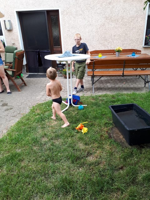Auch für die kleinen würde spontan ein Schwimmbad mit 50 cm Bahn aufgebaut.