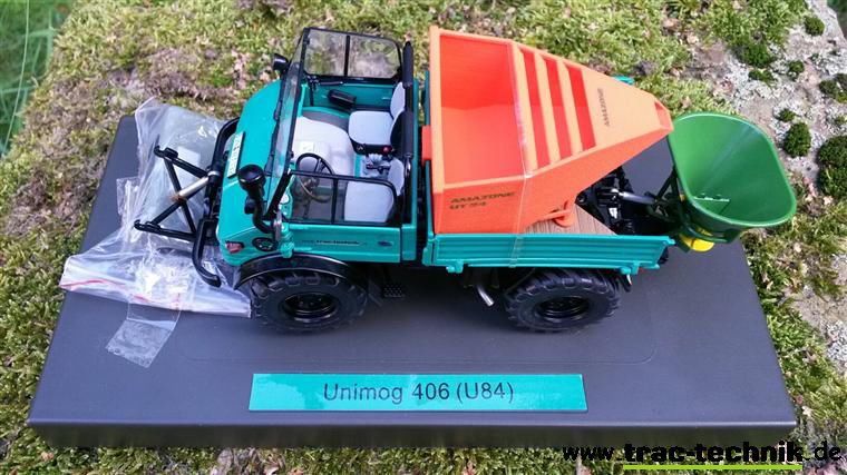 Unimog 406 mit Amazone UT 24 Düngerbehälter und Amazone ZA Düngerstreuer