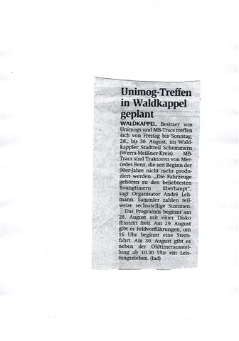 2. MB-trac und Unimog Treffen in Schemmern (Nordhessen) vom 28.-30.08.2015