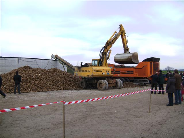 Super organisiert, mit Shuttlebus vom Parkplatz zum Werksgelände, schöne Vorführungen von der neuen Euromaus, dem Eurotiger, Albach Holzhäcksler (gigantisch, was der schluckt), "einlagern" von Zuckerrüben als Biogassubstrat für die neue Hauseigene Biogasanlage.