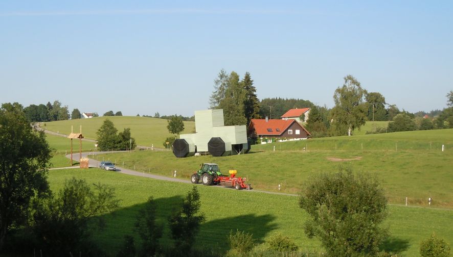 Momentan ca. 9 Meter hoch, 15 Meter lang und es wird noch weitergebaut.