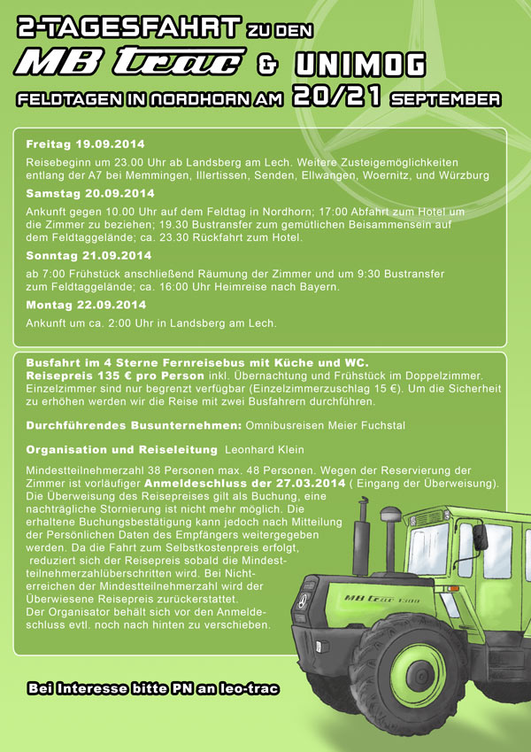 für MBtrac und Unimog Feldtage mit Treffen am 20.-21.09.2014 in 48531